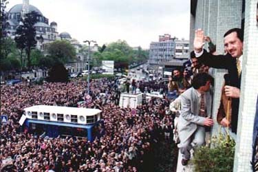 nedeniyle verilen ceza kasinlesince 26 mart 1999 Cuma Recep Tayyip Erdogan binlerce Istanbullunun gozyaslari ile Pinarhisar Cezaevine girdi. 4 aylik cezasini buyuk bir onurla bitirdi ve aramiza geri dondu. Su anda tum Turkiye Recep Tayyip Erdoganin siyasete donecegi gunu sabirsizlikla bekliyor. Bizler onun layik oldugu yere mutlaka gelcegine eminiz. Recep Tayyip Erdoganin dedigi gibi: AYDINLIK YARINLARDA BULUSMAK DILEGIYLE...